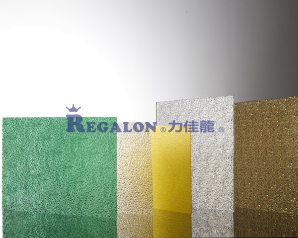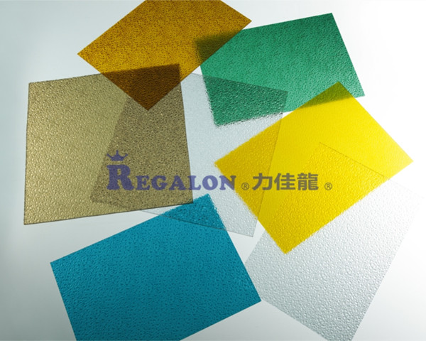力佳龍?顆粒實心板是聚碳酸酯實心板中的一個分支,有磨砂紋,鉆石紋,棱鏡紋等裝飾性和功能性的紋理可供選擇。除具有聚碳酸酯實心板材優(yōu)異的性能之外,它特殊的紋理結(jié)構(gòu)使其在室內(nèi)裝修或隔斷,建筑采光,廣告照明等領(lǐng)域有著廣泛的應(yīng)用。